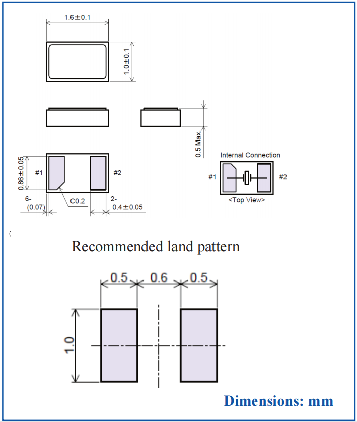 ABS05-32.768KHZ-9-T,1610mm,Abracon品牌,SMD晶體,ABS05,可穿戴設(shè)備晶振,尺寸圖