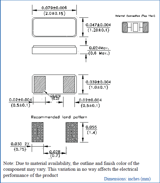 ABS06-32.768KHZ-T,2012mm,Abracon品牌,超小型晶振,ABS06,筆記本電腦晶振,尺寸圖