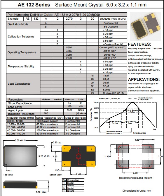 AE-132-A-2-5505-3-20-24M0000,5032mm,Anderson晶振,AE132,尋呼機應用晶振,參數表