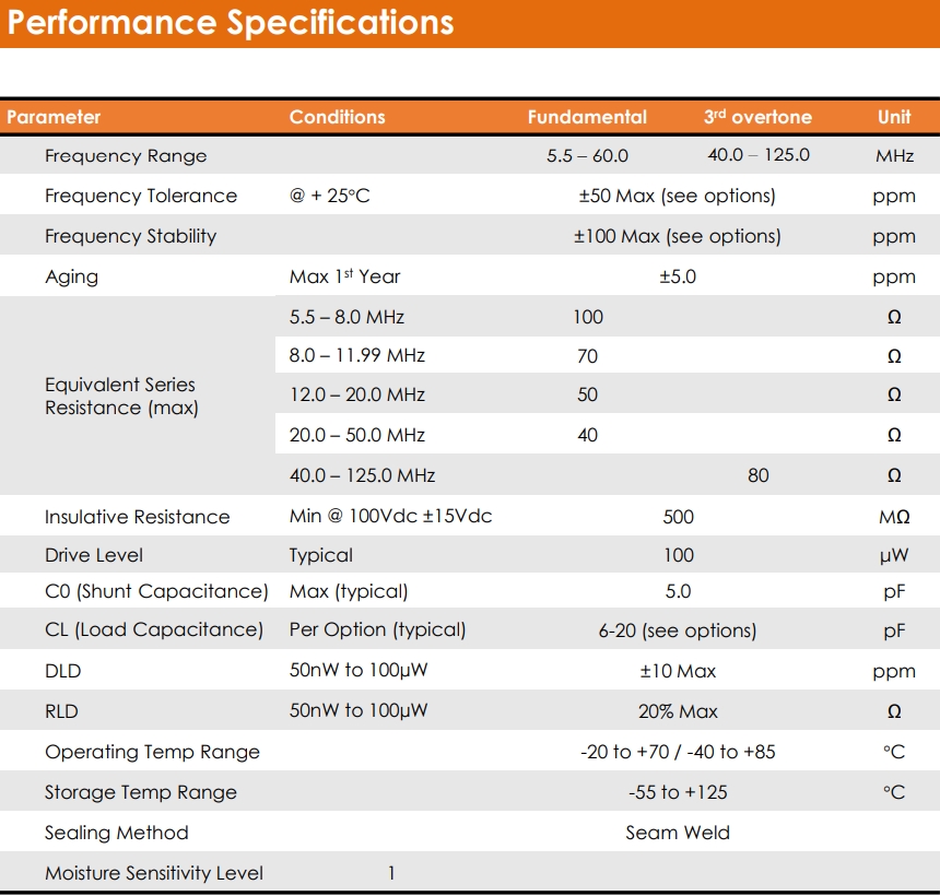 CL (Load Capacitance) | Per Option (typical) 6-20 (see options) pF | |||||||||||||||||||