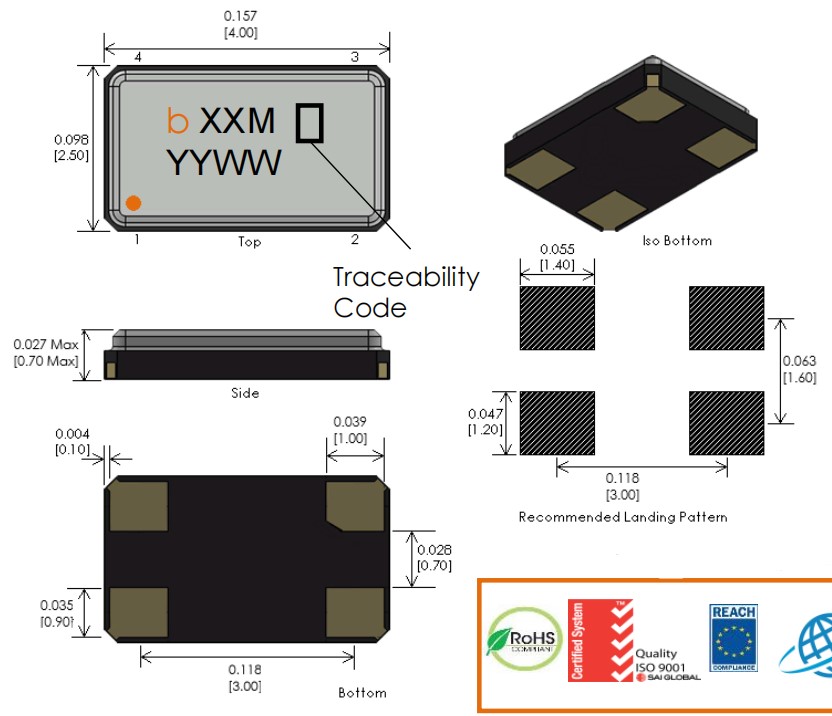24MHz,BQCSD-24MF-ABDFT,4025mm,Bliley貼片晶振,BQCSD,智能家居晶振,尺寸圖