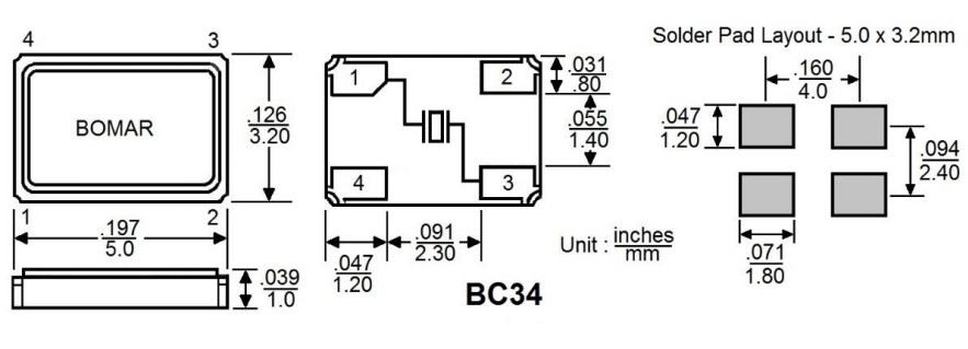 BC34EFI118-24.000000,24MHz,5032mm,Bomar輕薄型晶振,BC34,藍牙應用晶振,尺寸圖
