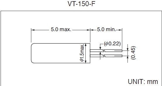 首頁時計產(chǎn)品VT-150-F插件晶振,32.768K石英水晶振子,日本精工晶振