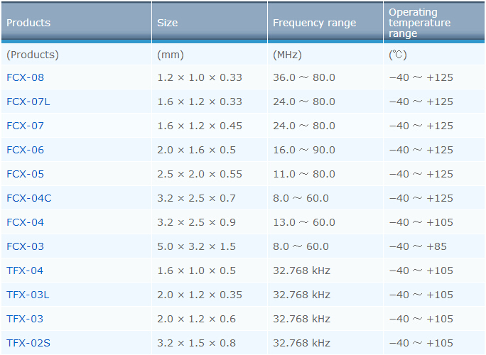 大河晶振規格 | TFX-02S | |