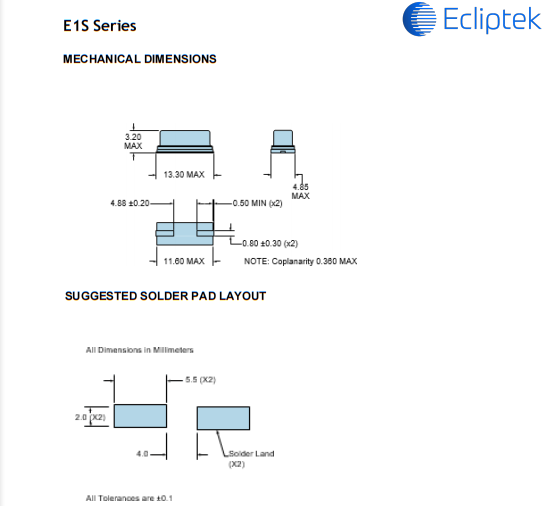 E1SFA16-6.290M TR | Ecliptek | E1S | -40°C ~ 85°C | 6.29 MHz | ±50ppm | ±30ppm | 16 pF |
