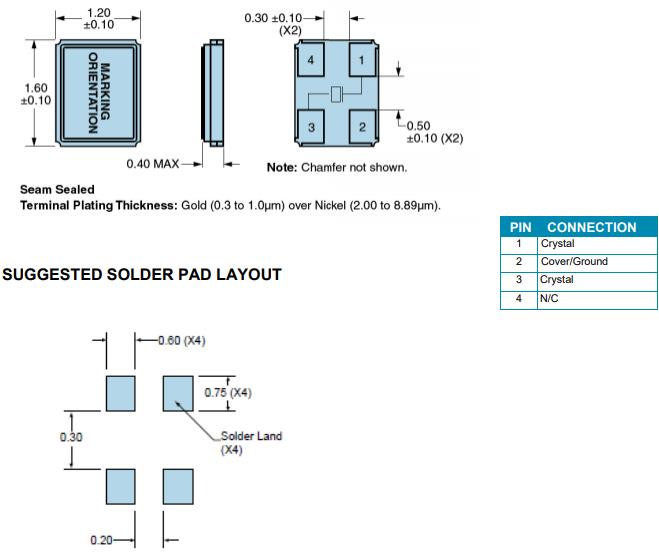 在一個不同擴張系數電路板(環氧玻璃)上焊接陶瓷封裝石英晶振時,在溫度長時間重復變化時可能導致端子焊接部分發生斷裂,請事先檢查焊接特性。