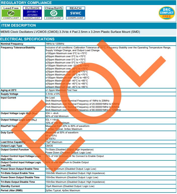 抗沖擊是指晶振產品可能會在某些條件下受到損壞.例如從桌上跌落,摔打,高空拋壓或在貼裝過程中受到沖擊.如果產品已受過沖擊請勿使用.因為無論何種石英晶振,其內部晶片都是貼片石英晶振制作而成的,高空跌落摔打都會給晶振照成不良影響. EMK33時鐘振蕩器,ECLIPTEK日蝕晶振,EMK33H2H-24.000M-TR晶振.