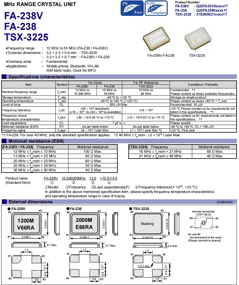 頻率范圍:12 MHz至50 MHz (FA-238 / FA-238V)