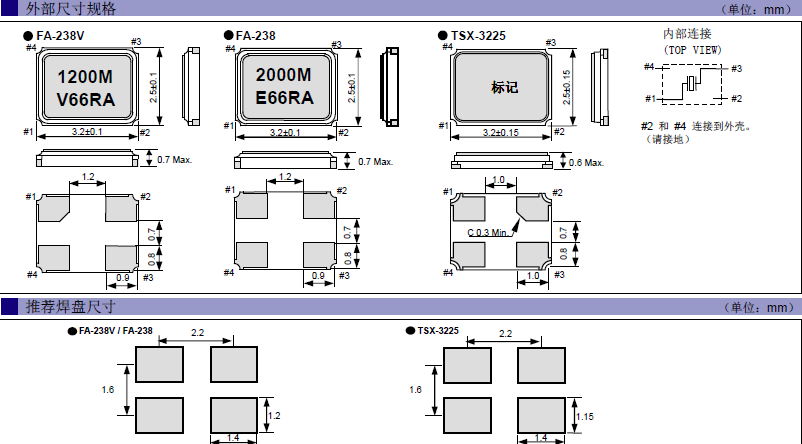 •外部尺寸:3.2 × 2.5 × 0.6 mm···TSX-3225