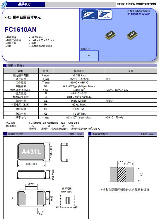 愛普生晶振FC1610AN,X1A000121000500貼片晶體,進(jìn)口音叉晶體,EPSON晶振,水晶振動子,陶瓷晶振,型號FC1610AN,編碼X1A000121000500是一款貼片型的無源晶體,尺寸為1610mm,頻率32.768KHZ,負(fù)載12.5pF,精度20ppm,工作溫度-40to+85°C產(chǎn)品具備一定的穩(wěn)定性能和耐壓性能,超級適合用于無線網(wǎng)絡(luò)設(shè)備,電子產(chǎn)品等領(lǐng)域。隨著需求的增長,同時發(fā)布具備性能優(yōu)越的產(chǎn)品線,編碼X1A000121001300也是一款環(huán)保性能符合ROHS/無鉛標(biāo)準(zhǔn).