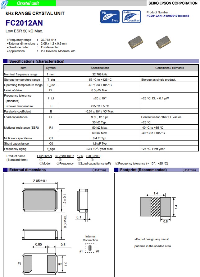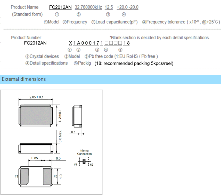 X1A000171000100 | FC2012AN | 32.768kHz | 2.05 x 1.2 x 0.6 mm | 12.5 pF | +/-20.0 ppm |
