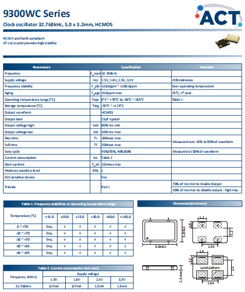 ACT晶振,9300WC晶振,SPXO有源晶振.貼片式石英晶體振蕩器,低電壓啟動功率,并且有多種電壓供選擇,比如有1.8V,2.5V,3.3V,3.8V,5V等,產品被廣泛應用于,平板筆記本,GPS系統,光纖通道,千兆以太網,串行ATA,串行連接SCSI,PCI-Express的SDH / SONET發射基站等領域.符合RoHS/無鉛.