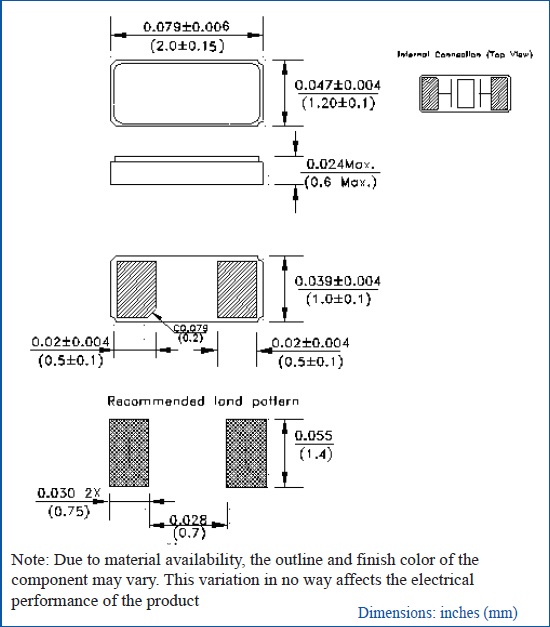 頻率溫度特征 | f_tem | ±20× 10-6 /-40°C~+1250°C | 超出標準的規格請聯系我們. |