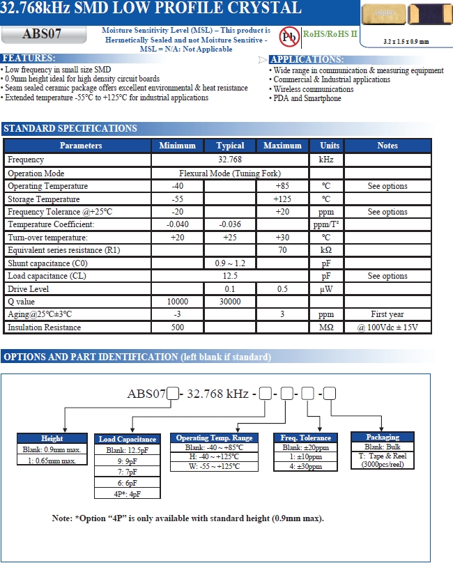 Abracon晶振 | 單位 | ABS07晶振 | 石英晶振基本條件 |
