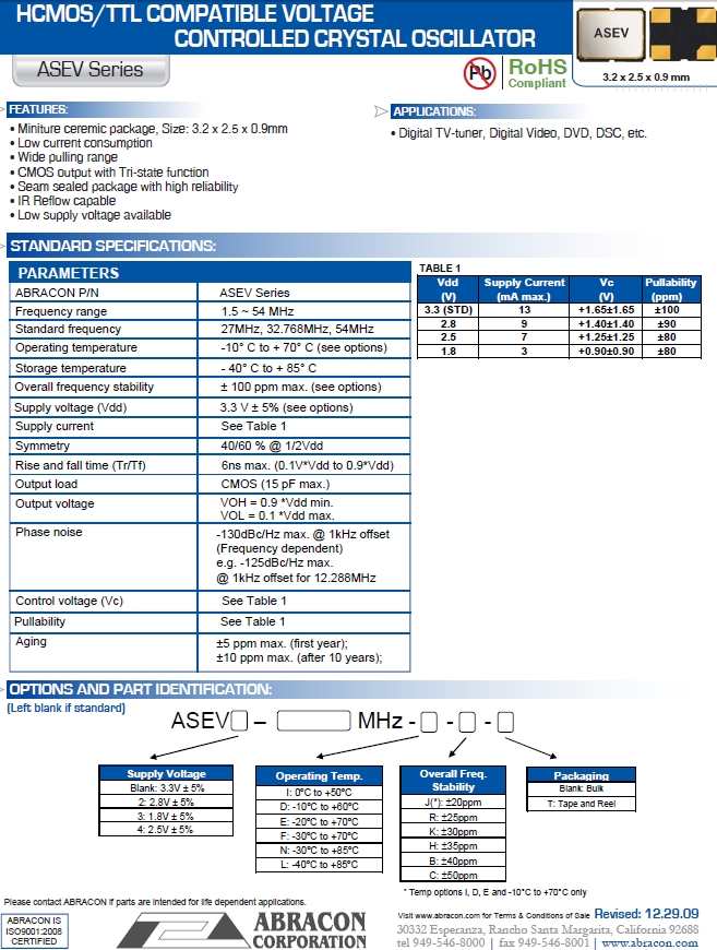 Abracon晶振,有源晶振,ASEV石英振蕩子.小型貼片石英晶振,外觀尺寸具有薄型表面貼片型石英晶體諧振器,特別適用于有小型化要求的市場領域,比如智能手機,無線藍牙,平板電腦等電子數(shù)碼產(chǎn)品.晶振本身小型,薄型,重量輕,晶體具有優(yōu)良的耐環(huán)境特性,如耐熱性,耐沖擊性.