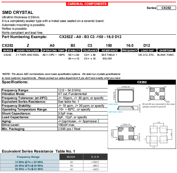 Cardinal晶振 | 單位 | CX252晶振 | 石英晶振基本條件 |