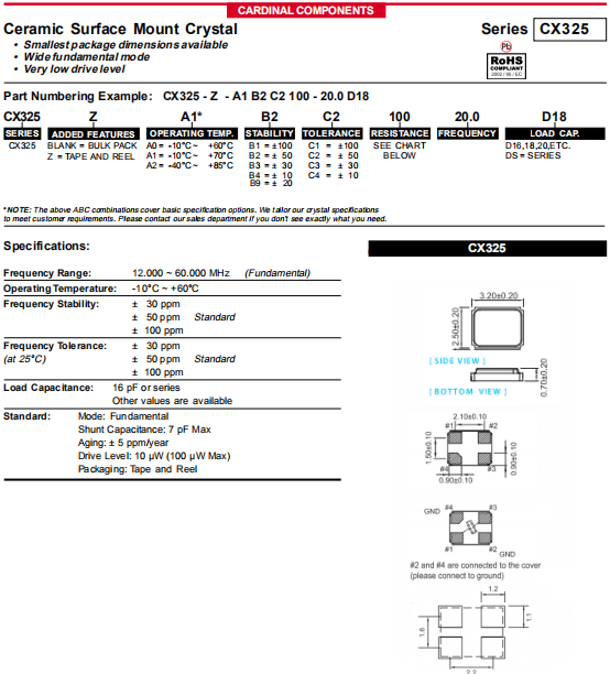 Cardinal晶振 | 單位 | CX325晶振 | 石英晶振基本條件 |