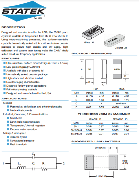 STATEK晶振 | 單位 | CX9VSM晶振 | 石英晶振基本條件 |