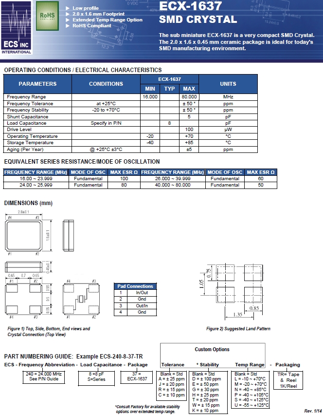 ECS晶振 | 單位 | ECX-1637晶振 | 石英晶振基本條件 |