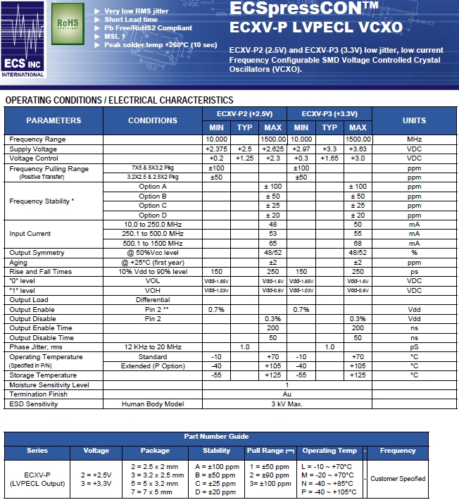ECS晶振,伊西斯晶體,ECXV-P3振蕩子.貼片石英晶振,體積小,焊接可采用自動貼片系統,產品本身小型,表面貼片晶振,特別適用于有小型化要求的電子數碼產品市場領域,因產品小型,薄型優勢,耐環境特性,包括耐高溫,耐沖擊性等,在移動通信領域得到了廣泛的應用,晶振產品本身可發揮優良的電氣特性,滿足無鉛焊接的高溫回流溫度曲線要求.