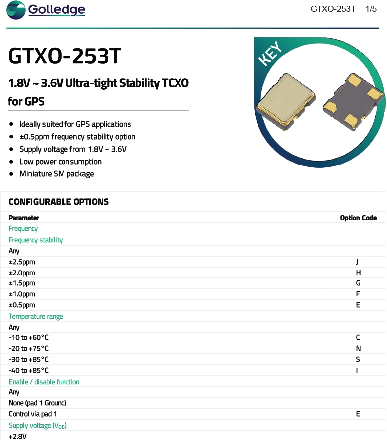 Golledge晶體,Golledge Crystal,GTXO-253T振蕩子.貼片石英晶體,體積小,焊接可采用自動貼片系統,產品本身小型,表面貼片晶振,特別適用于有小型化要求的電子數碼產品市場領域,因產品小型,薄型優勢,耐環境特性,包括耐高溫,耐沖擊性等,在移動通信領域得到了廣泛的應用,晶振產品本身可發揮優良的電氣特性,滿足無鉛焊接的高溫回流溫度曲線要求.