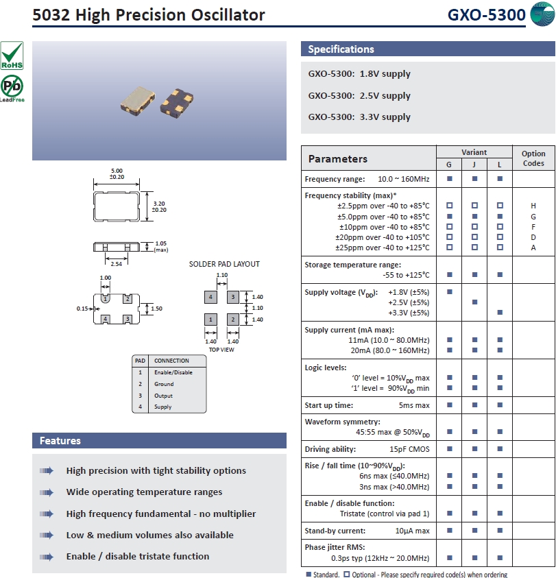 Golledge晶振,石英晶振,GXO-5300石英晶體振蕩子.5032mm體積的石英晶體振蕩器,有源晶振,該產品可驅動2.5V的溫補晶振,壓控晶振,VC-TCXO晶體振蕩器產品,電源電壓的低電耗型,編帶包裝方式,可對應自動高速貼片機自動焊盤,及IR回流焊盤(無鉛對應),為無鉛產品,小型,質地輕.產品被廣泛應用到集成電路,程控交換系統,無線發射基站.