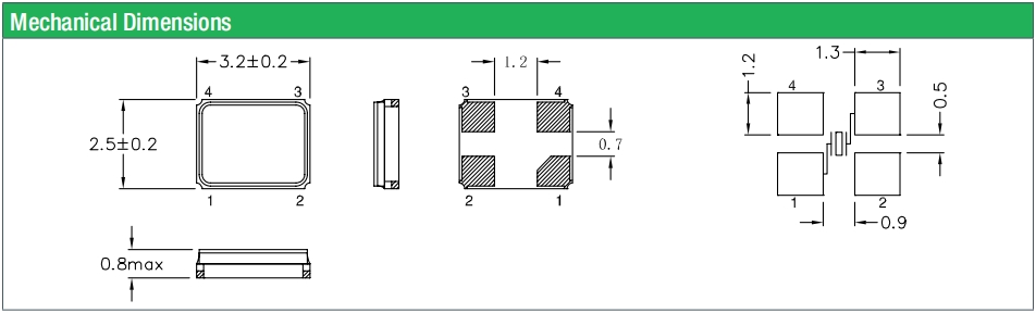 頻率溫度特征 | f_tem | ±50× 10-6 /-30°C~+85°C | 超出標準的規格請聯系我們. |