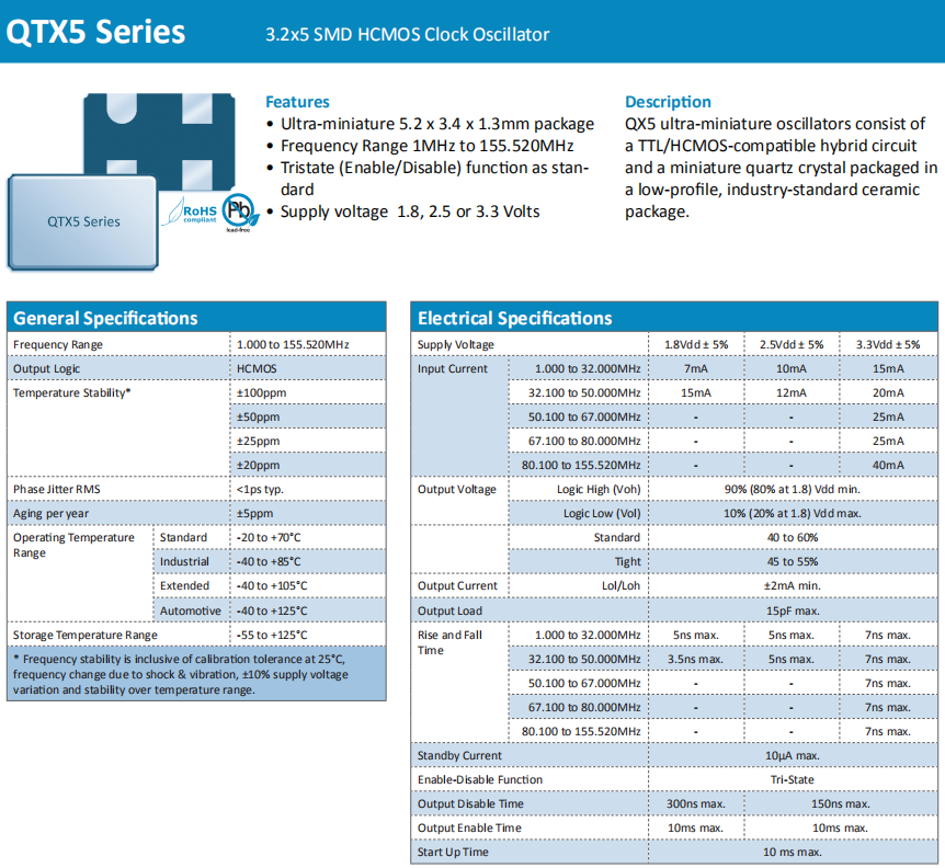 頻率穩(wěn)定度 | ppm | ±20ppm,±25ppm,±50pm,±100ppm |