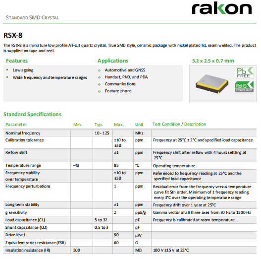 Rakon晶振 | 單位 | RSX-8晶振 | 石英晶振基本條件 |