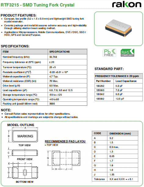 Rakon晶振 | 單位 | RTF3215晶振 | 石英晶振基本條件 |