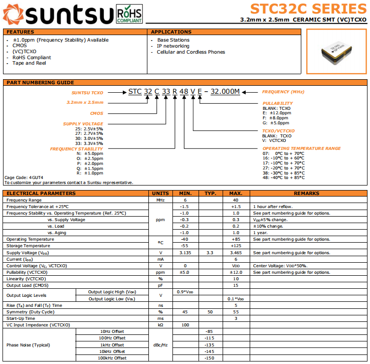 suntsu晶振,STC32C晶振,VC-TCXO振蕩器.3225mm體積非常小的SMDcrystal器件,是民用小型無線數(shù)碼產(chǎn)品的最佳選擇,小體積的晶振被廣泛應用到,手機藍牙,GPS定位系統(tǒng),無線通訊集,高精度和高頻率的穩(wěn)定性能,非常好的減少電磁干擾的影響,是民用無線數(shù)碼產(chǎn)品最好的選擇,符合RoHS/無鉛.