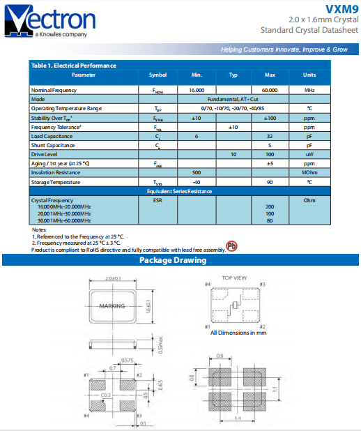 VECTRON晶振 | 單位 | VXM9晶振 | 石英晶振基本條件 |
