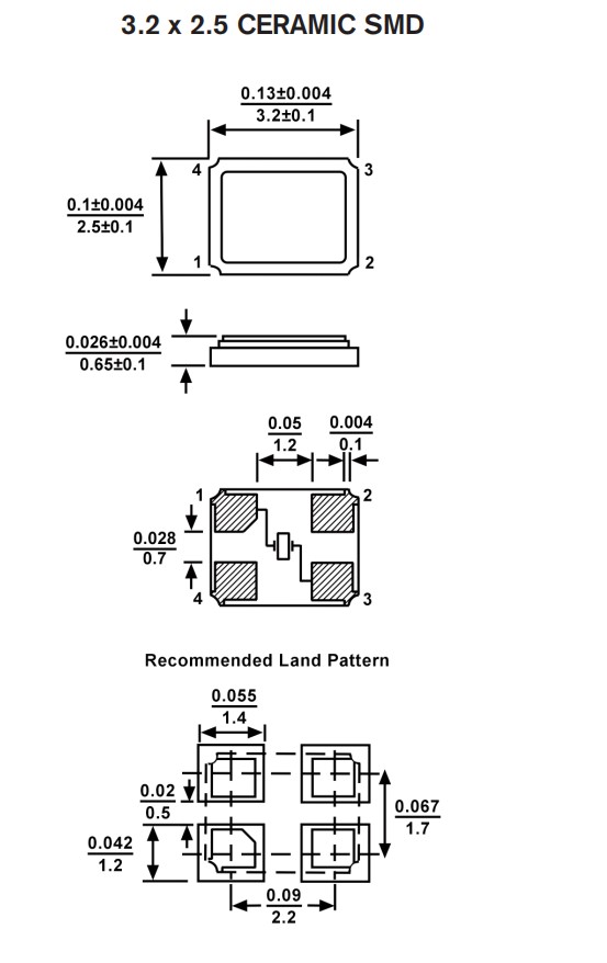 FMXMC2S118HJC-26.000000M-CM,3225mm,FMI晶振,26MHz,FMXMC2S,微處理器晶體,尺寸圖