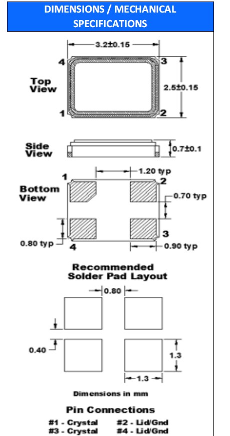FC3BAEBDI40.0-T1,40MHz,3225mm,FC3BA,Fox無源晶振,FC3BAEBDI40.0-T1,通訊設備晶振,尺寸圖