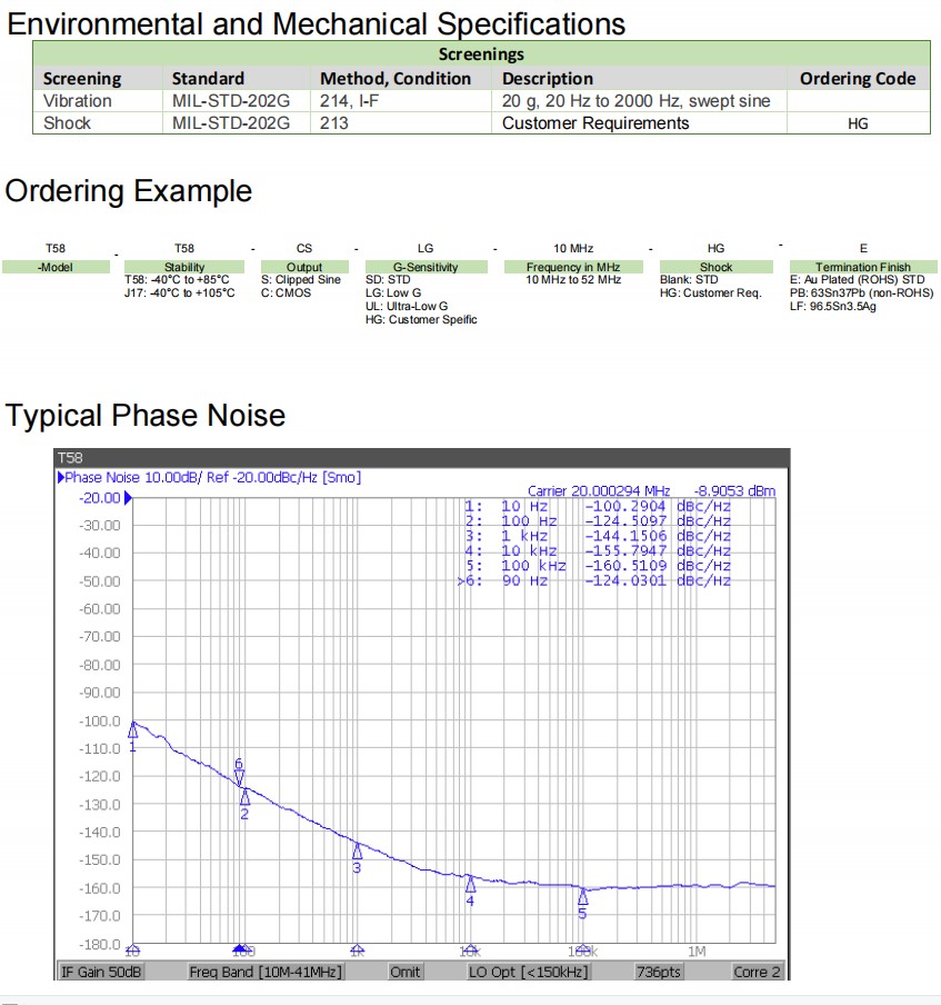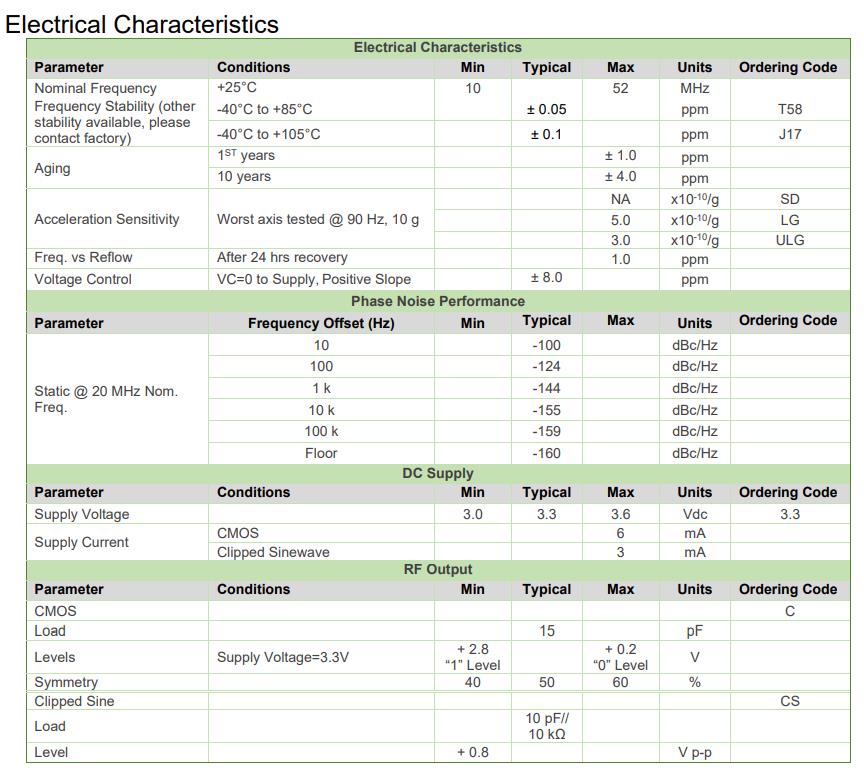 5032mm,T58-J17-CS-LG-45MHz-HG-E,45M,Greenray晶振,T58,低抖動晶振,參數表