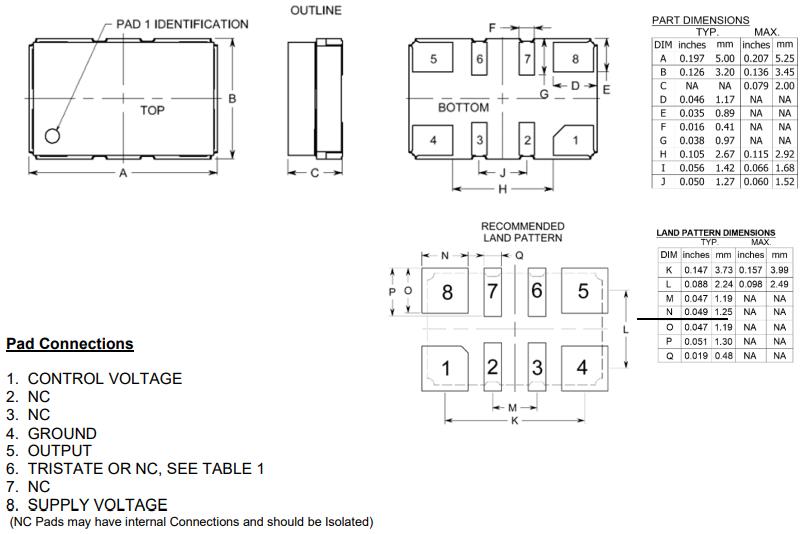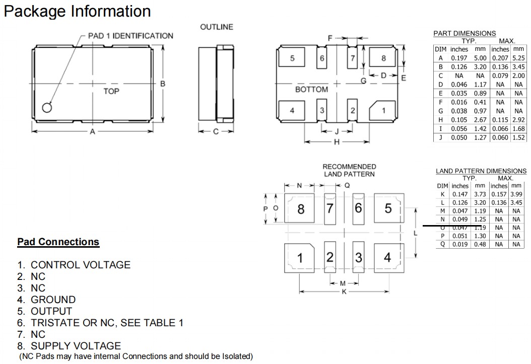 5032mm,T58-J17-CS-LG-45MHz-HG-E,45M,Greenray晶振,T58,低抖動晶振,尺寸圖