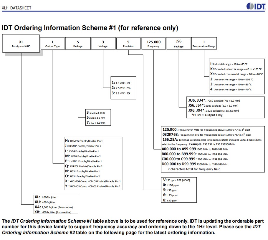 XLH336125.000JX4I | IDT晶振 | OSC XO 125.0000MHZ HCMOS SMD | XLH | 125MHz |