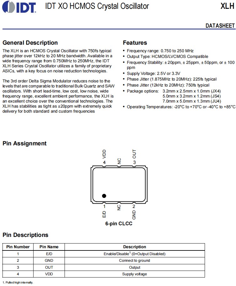 IDT有源晶振,XLH335012.288000I,低噪聲6G網(wǎng)絡(luò)晶振,XLH336125.000JX4I,HCMOS晶體振蕩器