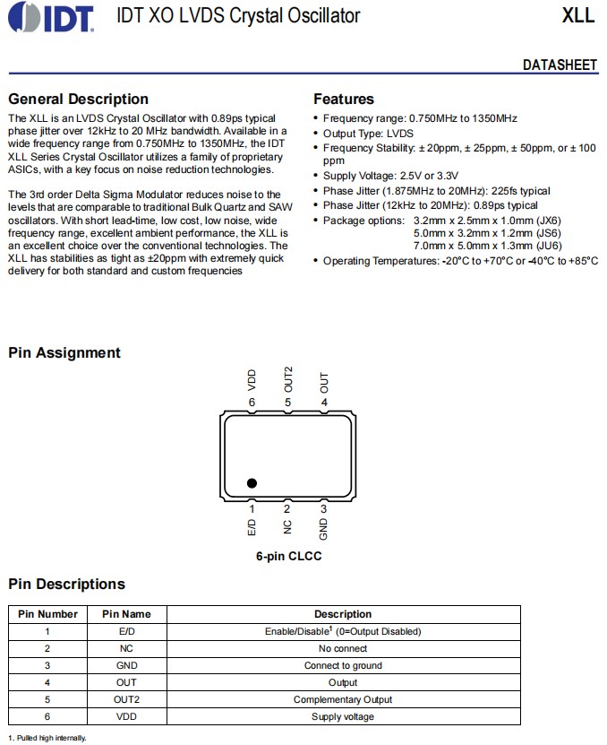 XLL526155.520000I | IDT晶振 | OSC XO 155.520MHZ LVDS SMD | XLL | 155.52MHz |