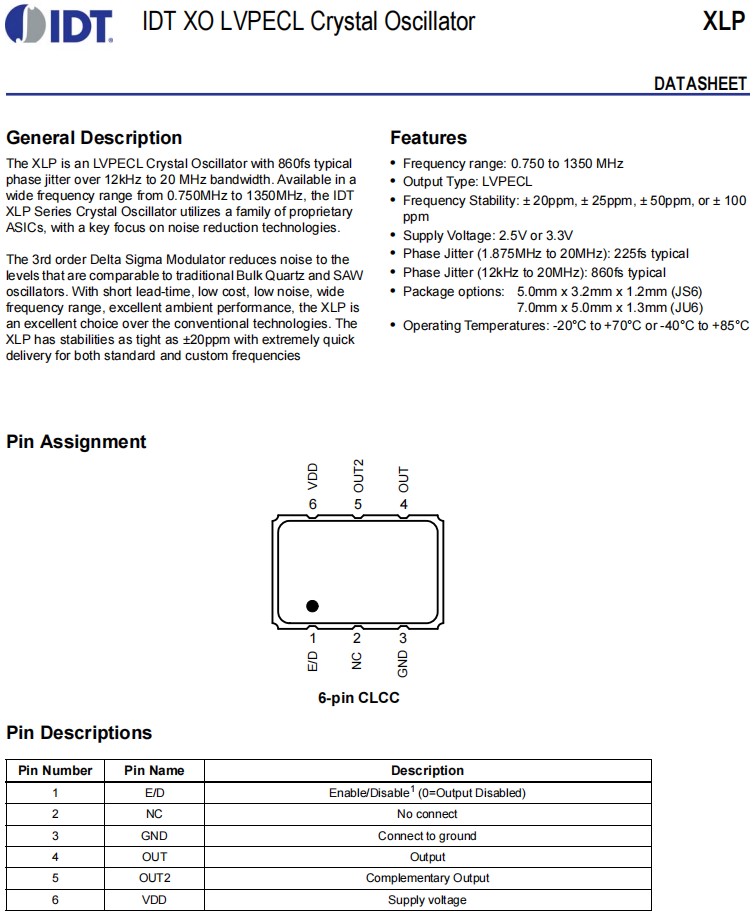 XLP730C50.000000X | IDT晶振 | OSCILLATOR XO 1.25GHZ LVPECL SMD | XPRESSO™ FXO-PC73 | 1.25GHz |