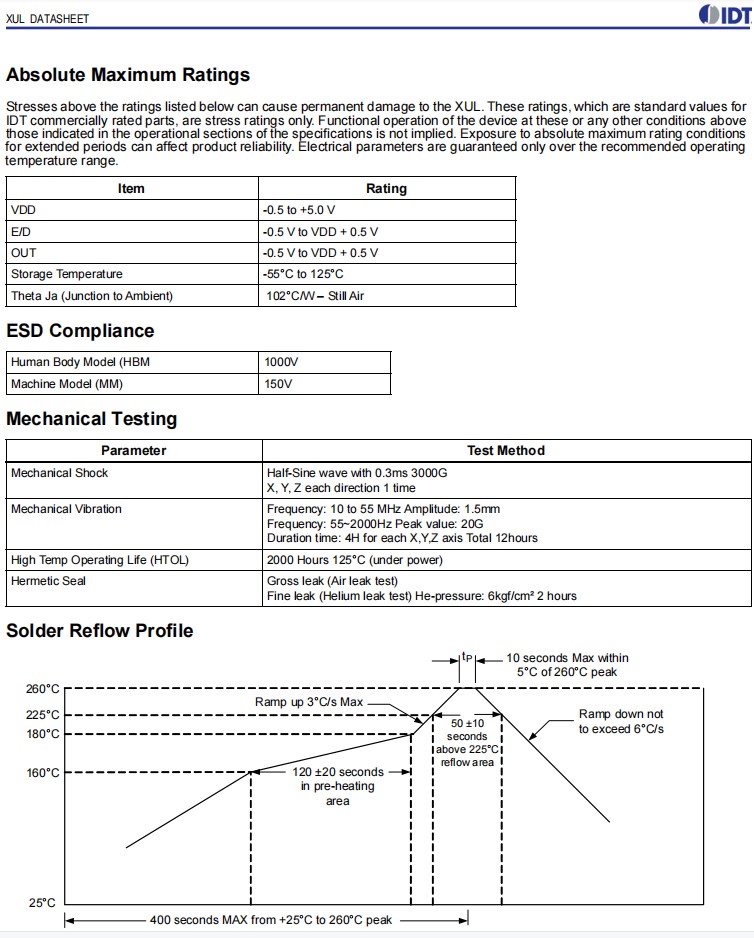 XUL535125.000JS6I | IDT晶振 | OSC 125MHZ 進口晶振 | XUL | 125MHz | LVDS |