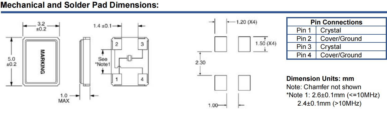 Frequency Tolerance (at 25°C) | ±50ppm, ±30ppm, ±25ppm, ±20ppm, ±15ppm, or ±10ppm |