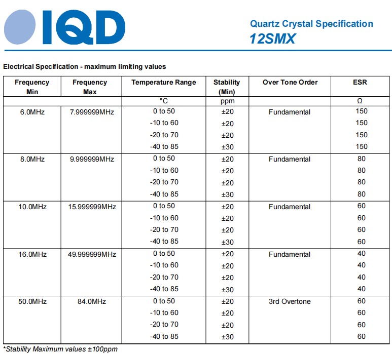 Frequency Stability | ±20.00ppm to ±100.00ppm |