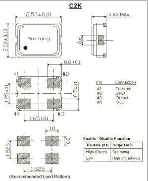 Tristate Option | Enable | Pin 1 = Hi or Open , Pin 3 active | ||