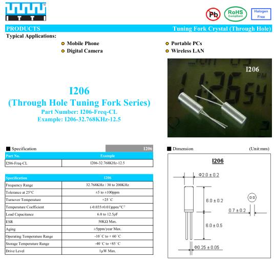 美國ITTI晶振,I206插件晶振,I206-32.768KHz-12.5晶振,插件石英晶振最適合用于比較低端的電子產品,比如兒童玩具,普通家用電器,即使在汽車電子領域中也能使產品高可靠性的使用.并且可用于安全控制裝置的CPU時鐘信號發生源部分,好比時鐘單片機上的石英晶振,在極端嚴酷的環境條件下,晶振也能正常工作,具有穩定的起振特性,高耐熱性,耐熱循環性和耐振性等