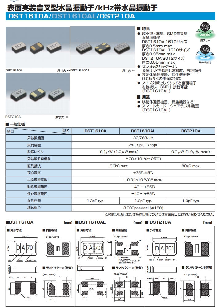 KDS晶振 | 7BG03276A1X | DST1610A | 1610 | 32.768K | 7PF | 20ppm | |