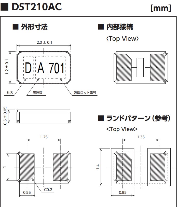 大真空2012mm晶體\DST210AC無源諧振器\1TJ125DR1AC054