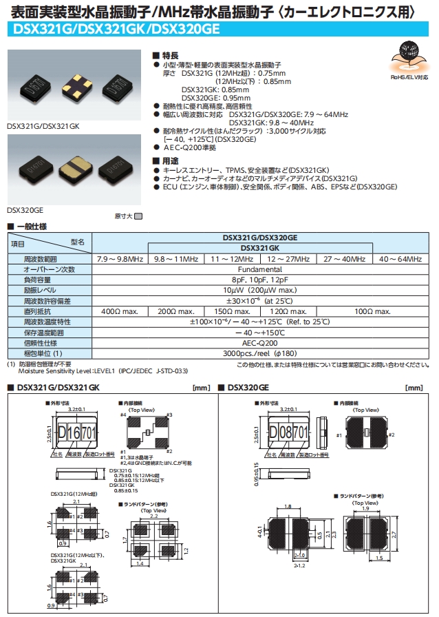 KDS晶振 | 1ZCT24000BD0A | DSX320GE | 3225 | 24.000MHZ | ||