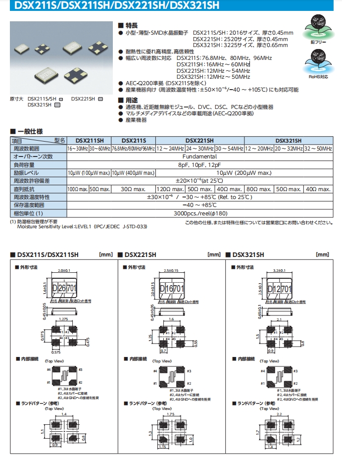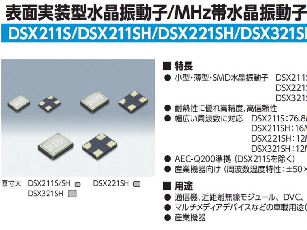 小型·超薄·SMD水晶振蕩器DSX211S/SH: 2016尺寸,厚度0.45mm