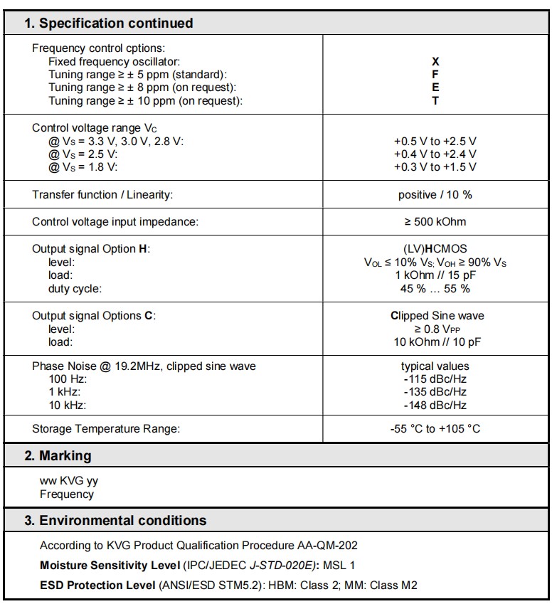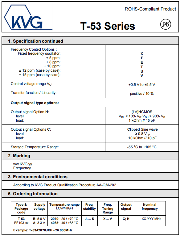 T-53A4085KXH-20.000MHz,5032mm,KVG溫補晶振,TCXO振蕩器,低抖動晶振,參數表